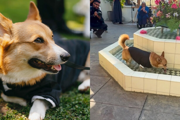 Corgi-ul adorabil care a cucerit internetul sărind în fântână după ce a adus verighetele mirilor